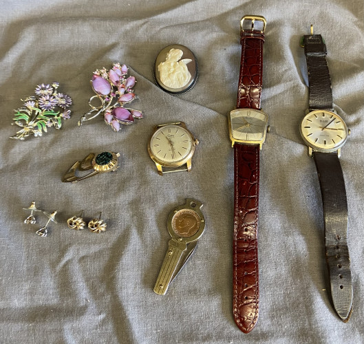 3 Vintage Watches, broaches and earrings