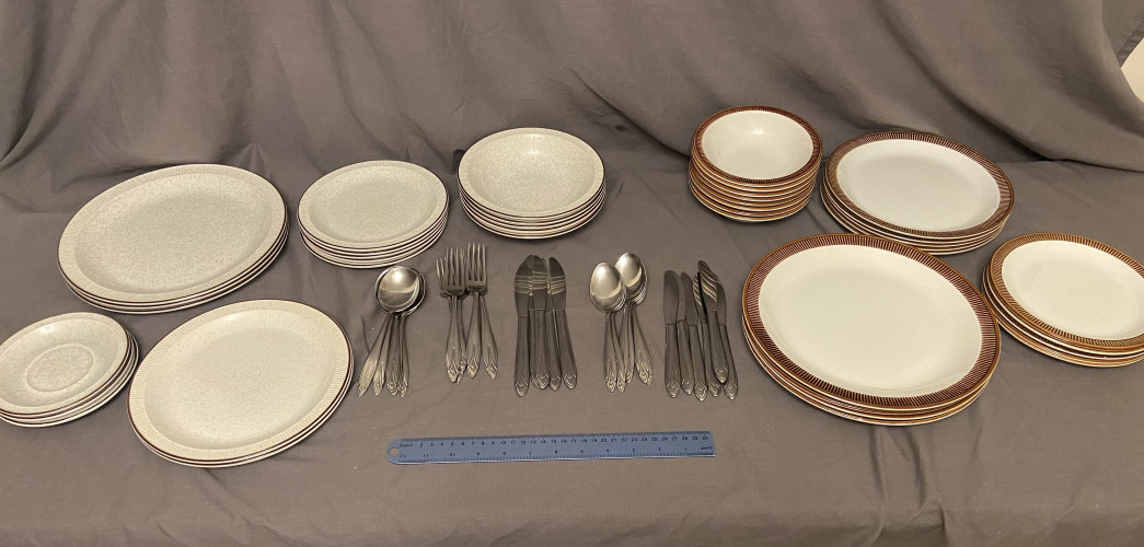Two Poole Pottery dinner sets and cutlery set