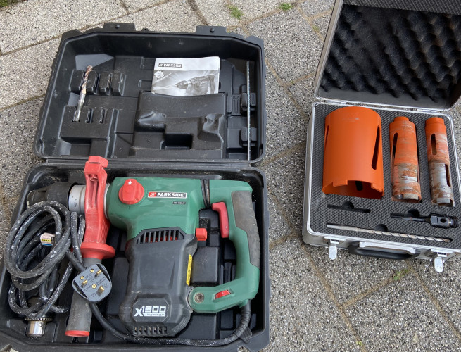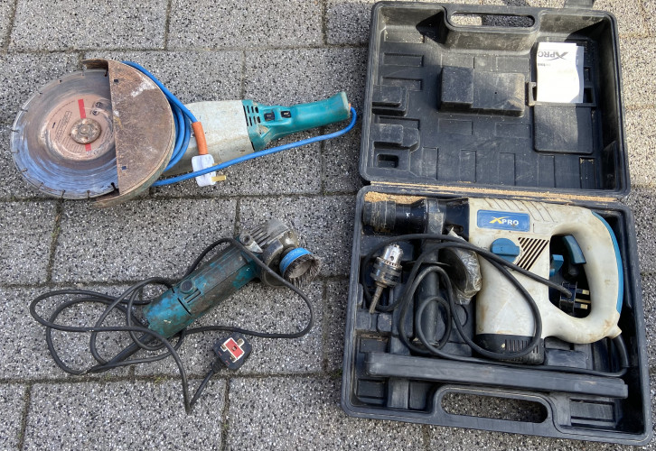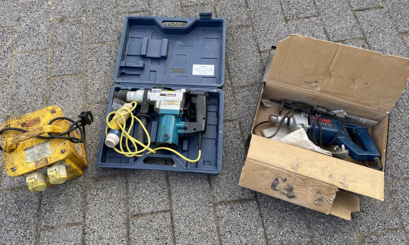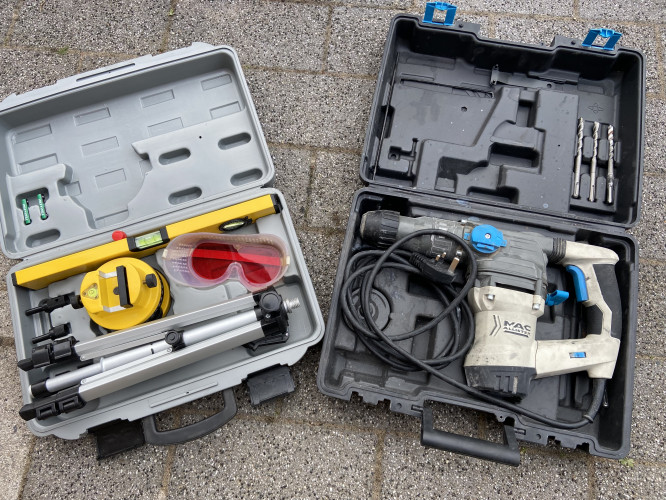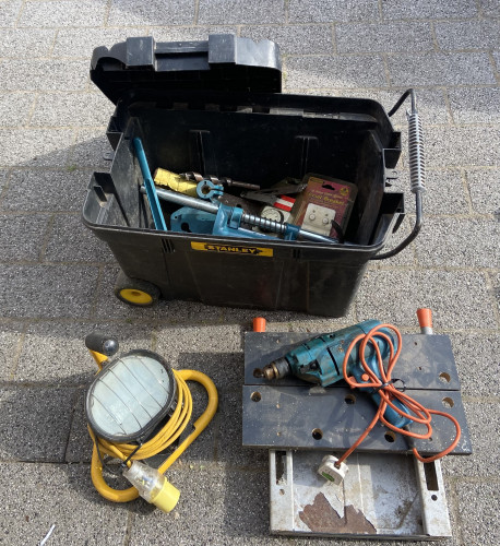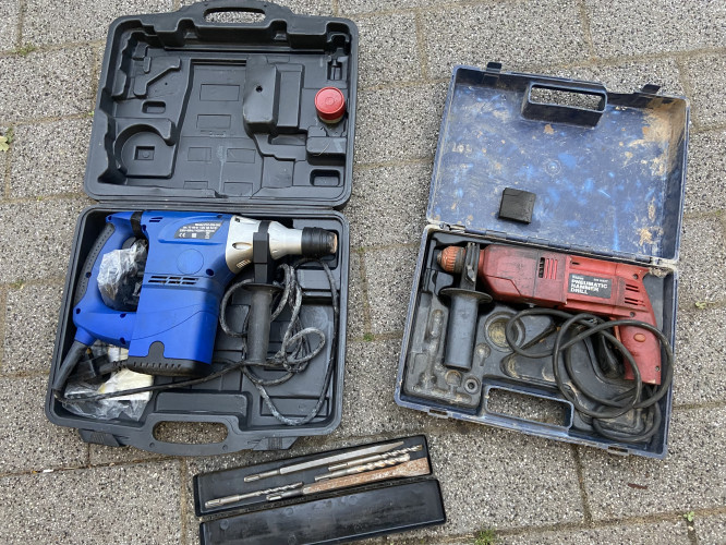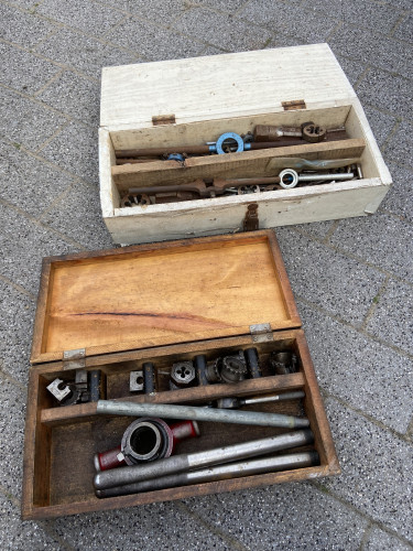 2 vintage suitcases one with some old tools