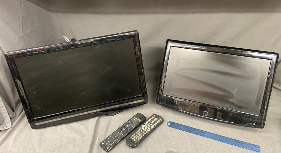 2 small televisions with wall brackets