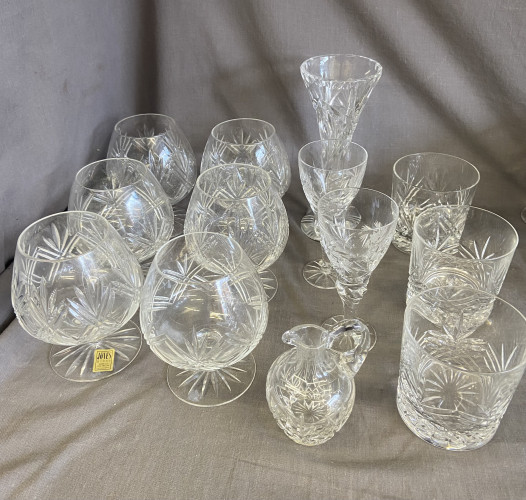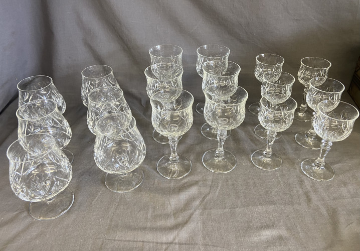 Set of crystal glasses and other crystal glasses