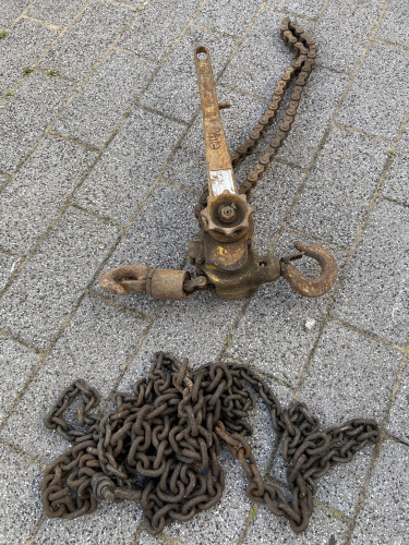 2 large heavy meat hooks on rollers