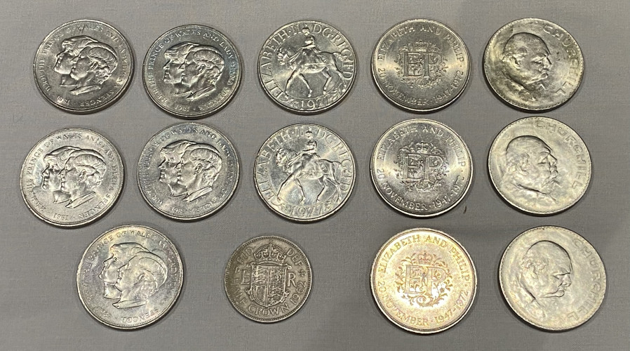 3 Silver ingots, one is for Charles and Diana’s wedding celebration, and the others are Birmingham 1977 for the queen’s jubilee