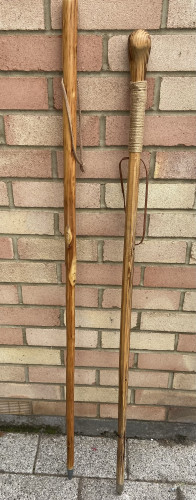 Shooting stick , brass handled walking stick and snooker cue